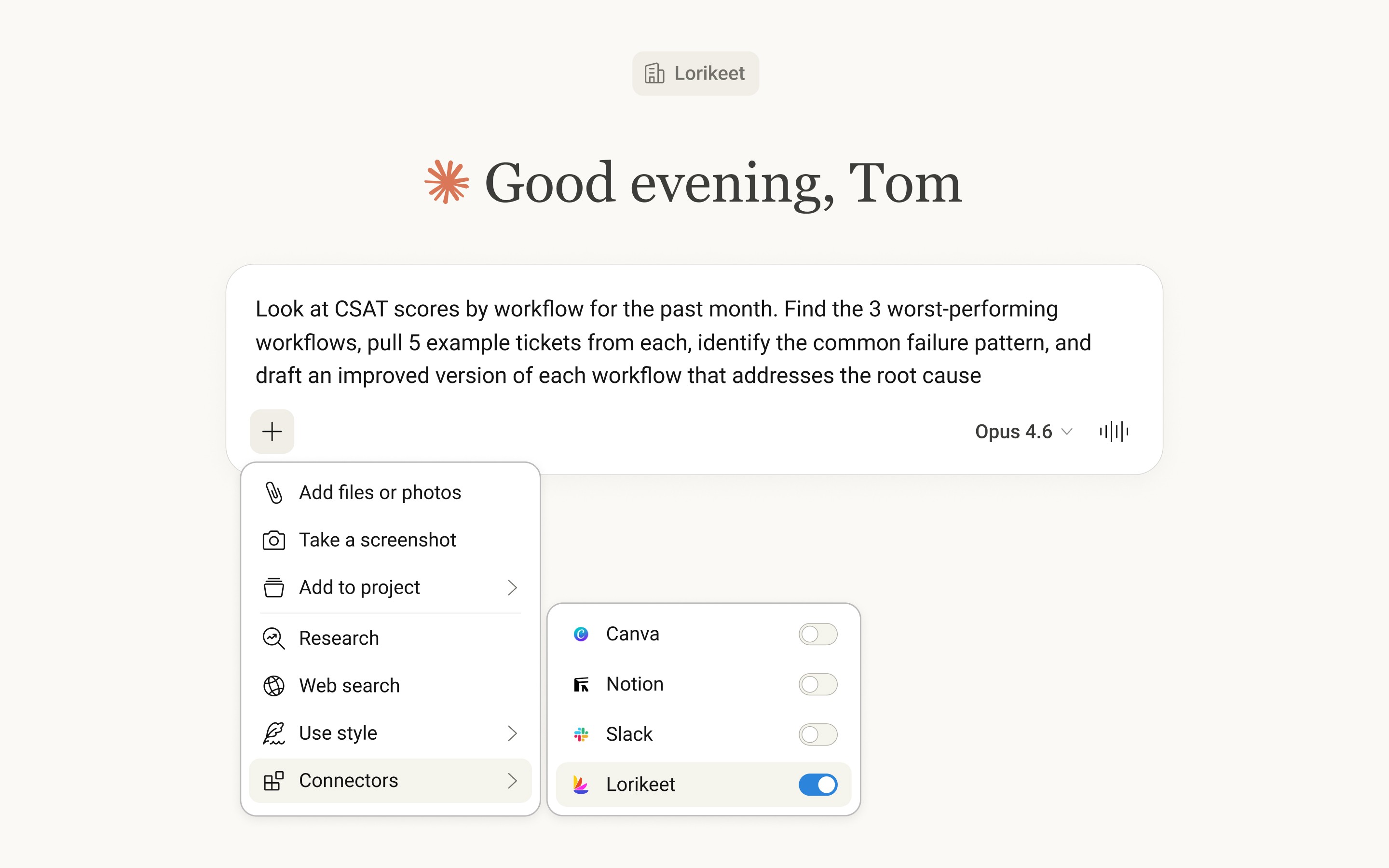Lorikeet doesn't operate in isolation. MCP connects multiple tools in a single conversation, so you can work with Lorikeet alongside everything you already use: databases, CRMs, analytics, internal APIs, Slack, and more.