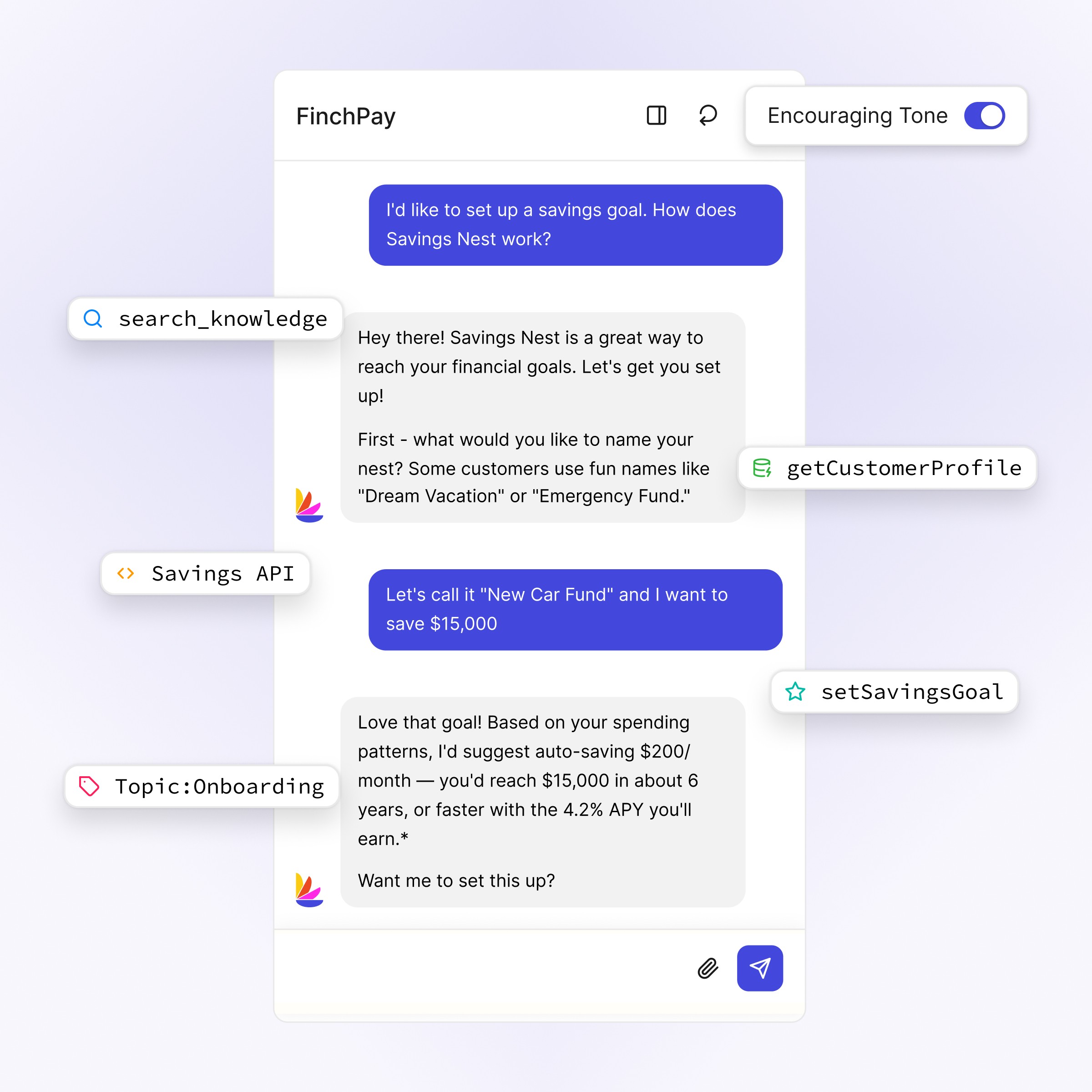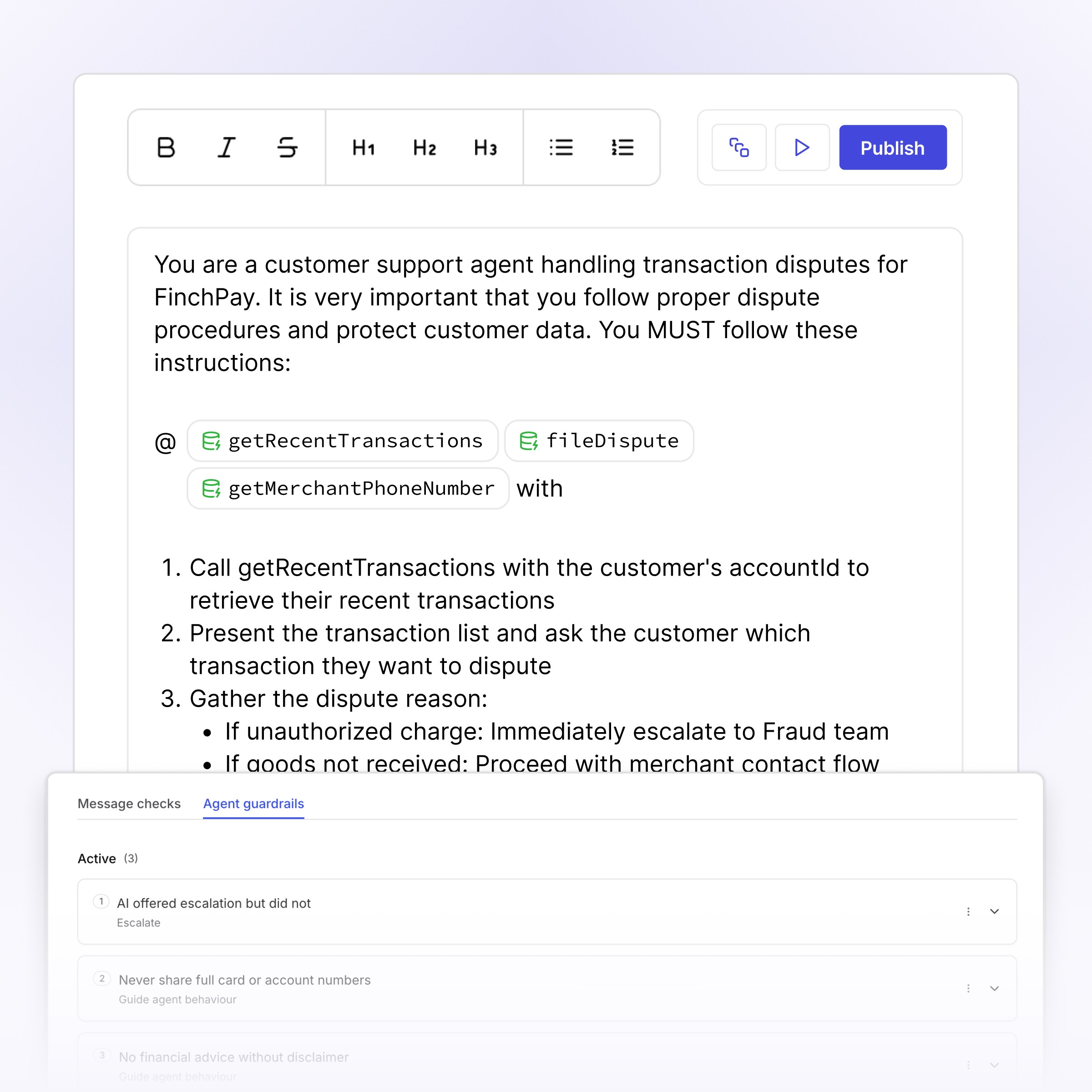 Multi-agent coordination across core banking, payments and partner systems: Handle complex financial workflows end to end — coordinating specialist agents to file disputes, arrange repayment plans, process loan modifications, and update account records across your systems, then keep expanding what's resolvable after launch.
