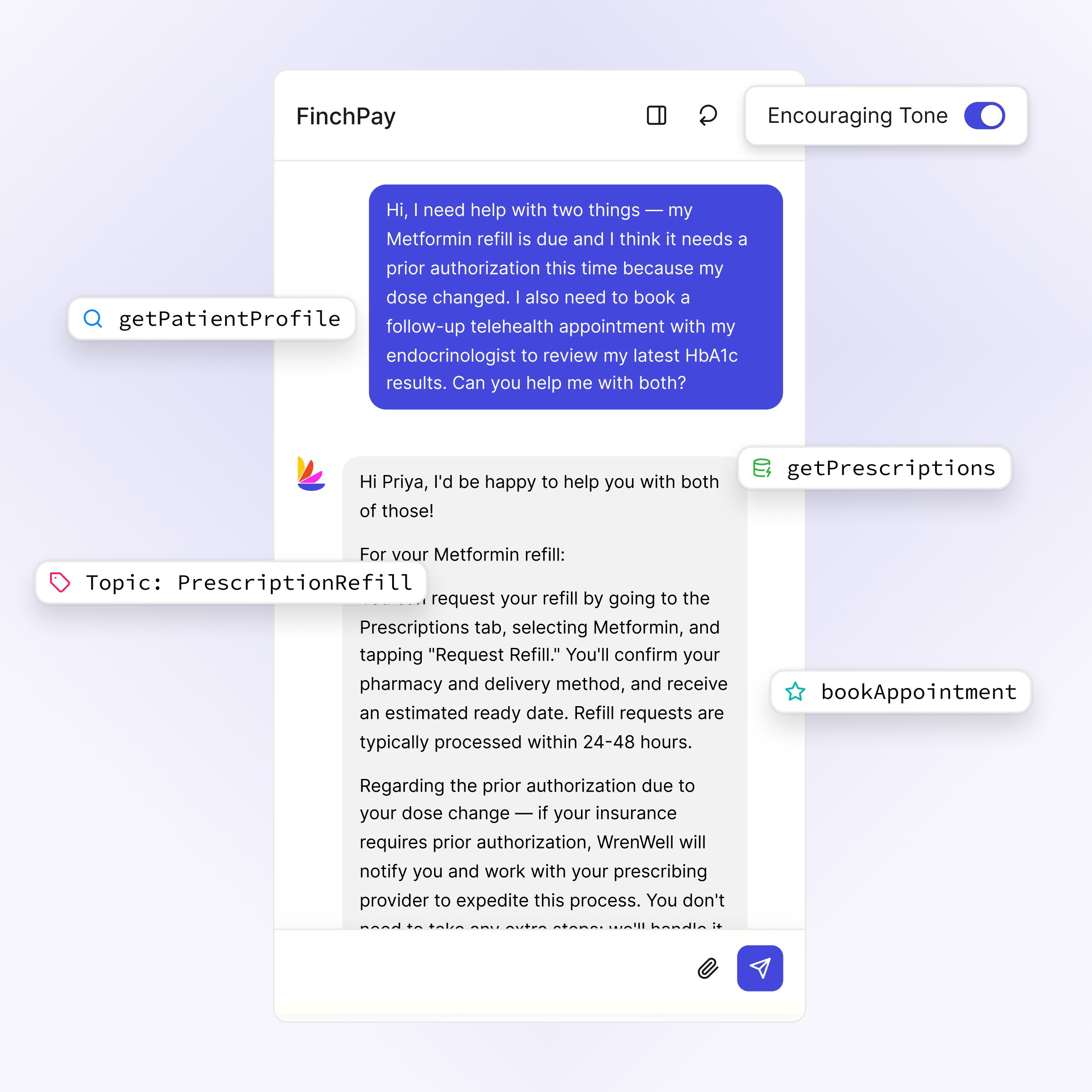 Resolve patient inquiries end-to-end from appointments to prescriptions